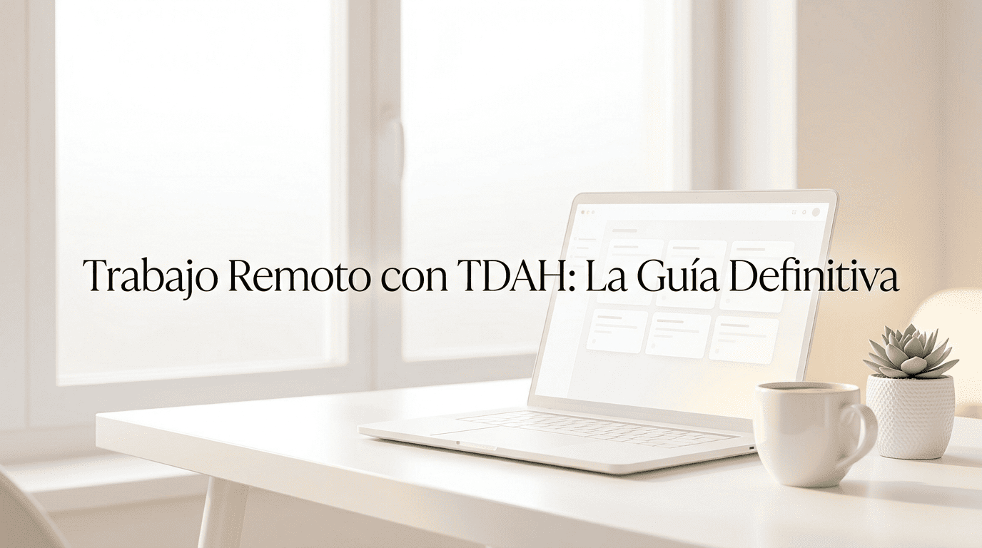 Trabajo remoto TDAH: esta combinación puede ser lo mejor o lo peor de tu vida laboral. El trabajo remoto con TDAH te deja sin estructura impuesta, sin jefe encima… el trabajo desde casa te deja solo frente a tu cerebro. Y si tienes TDAH, ya sabes lo que eso significa. Según datos del INE, más del 30% de los trabajadores españoles realizan ya alguna forma de trabajo remoto de forma habitual, y entre el 4% y el 6% de la población adulta tiene TDAH. Son millones de personas intentando cuadrar esta ecuación. Esta guía sobre trabajo remoto con TDAH no es de motivación barata. Es una guía real, construida para cerebros reales, con estrategias que funcionan cuando el resto falla.